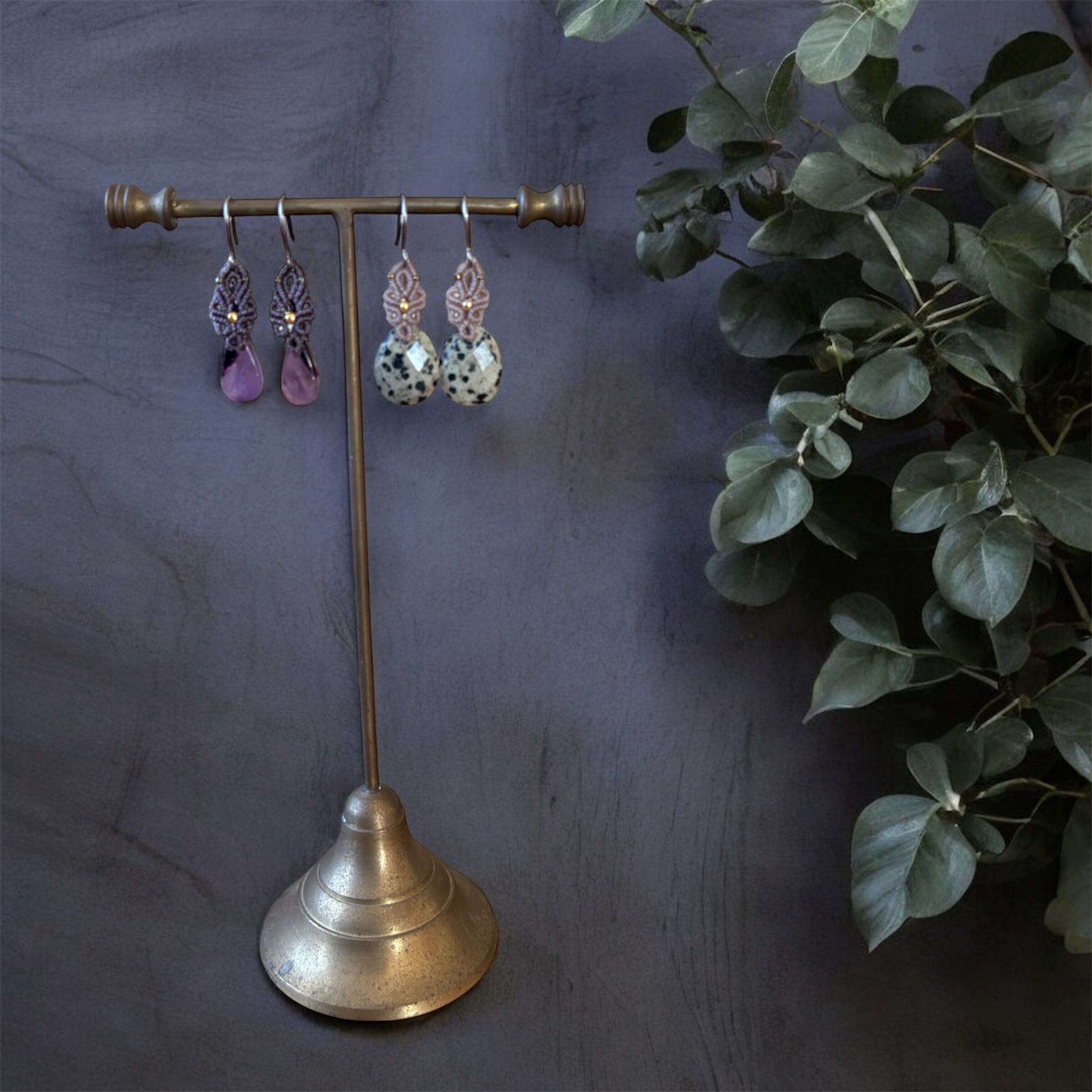 トラピッチェアメジストのマクラメピアス