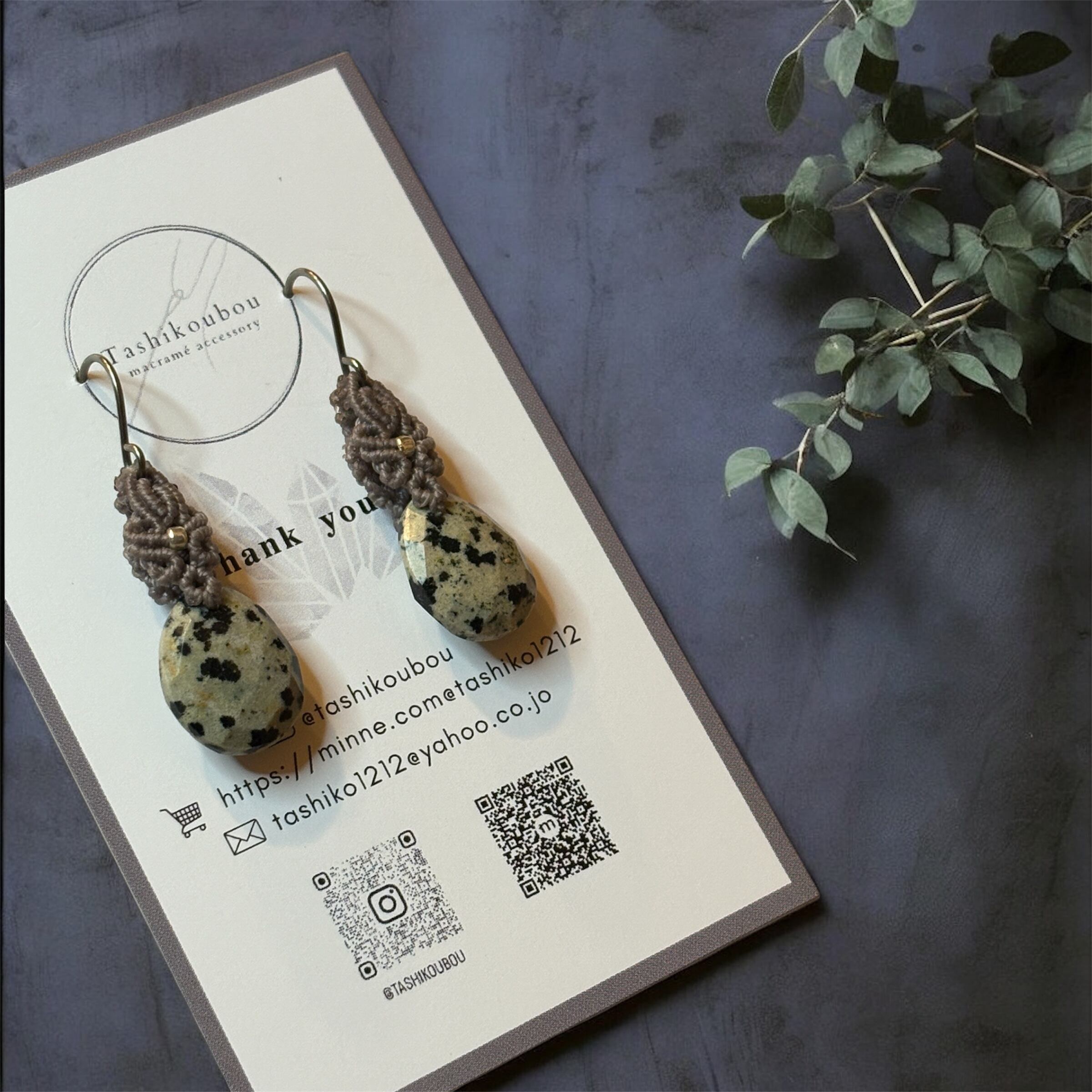 マクラメピアス|ダルメシアンジャスパー (P-DJP-01)