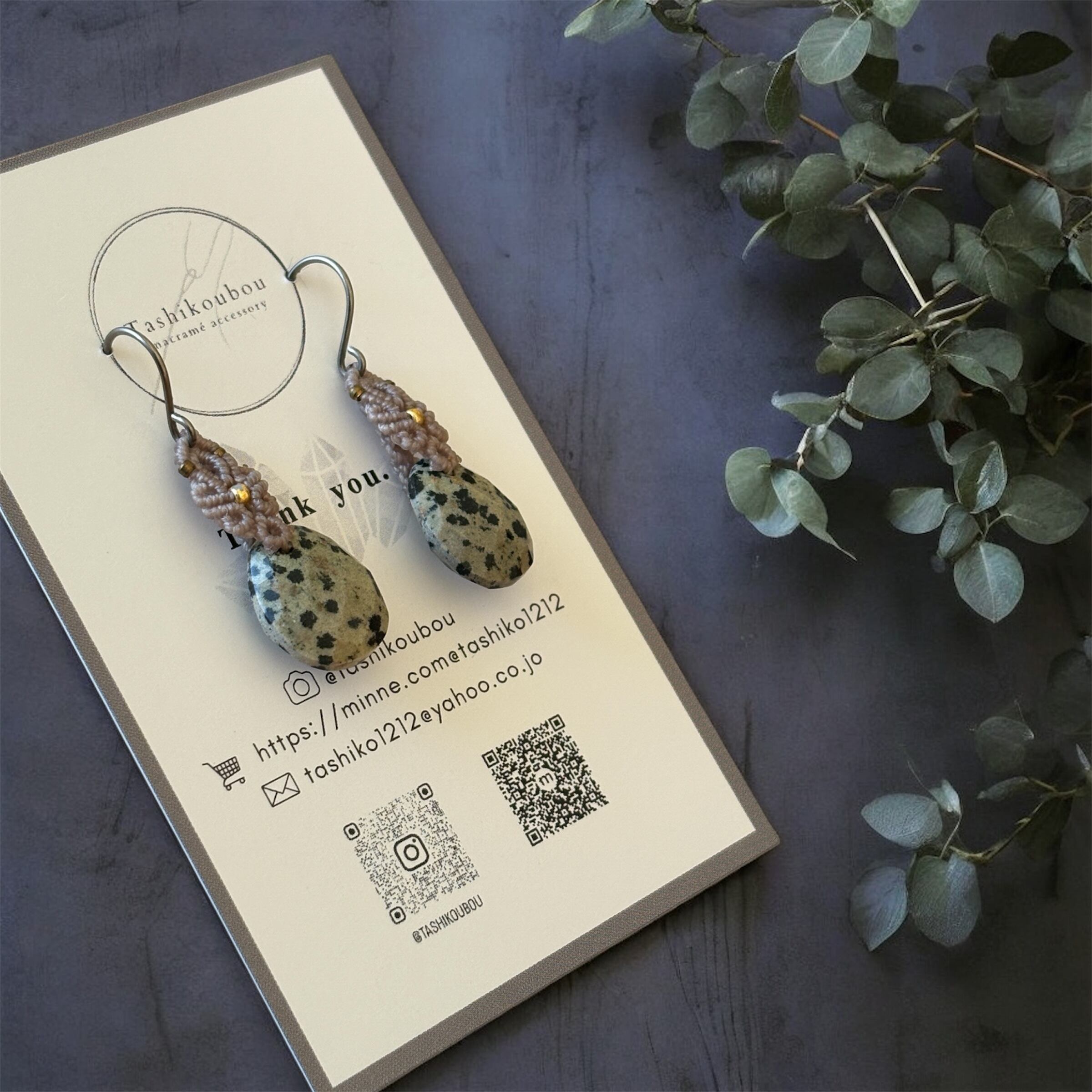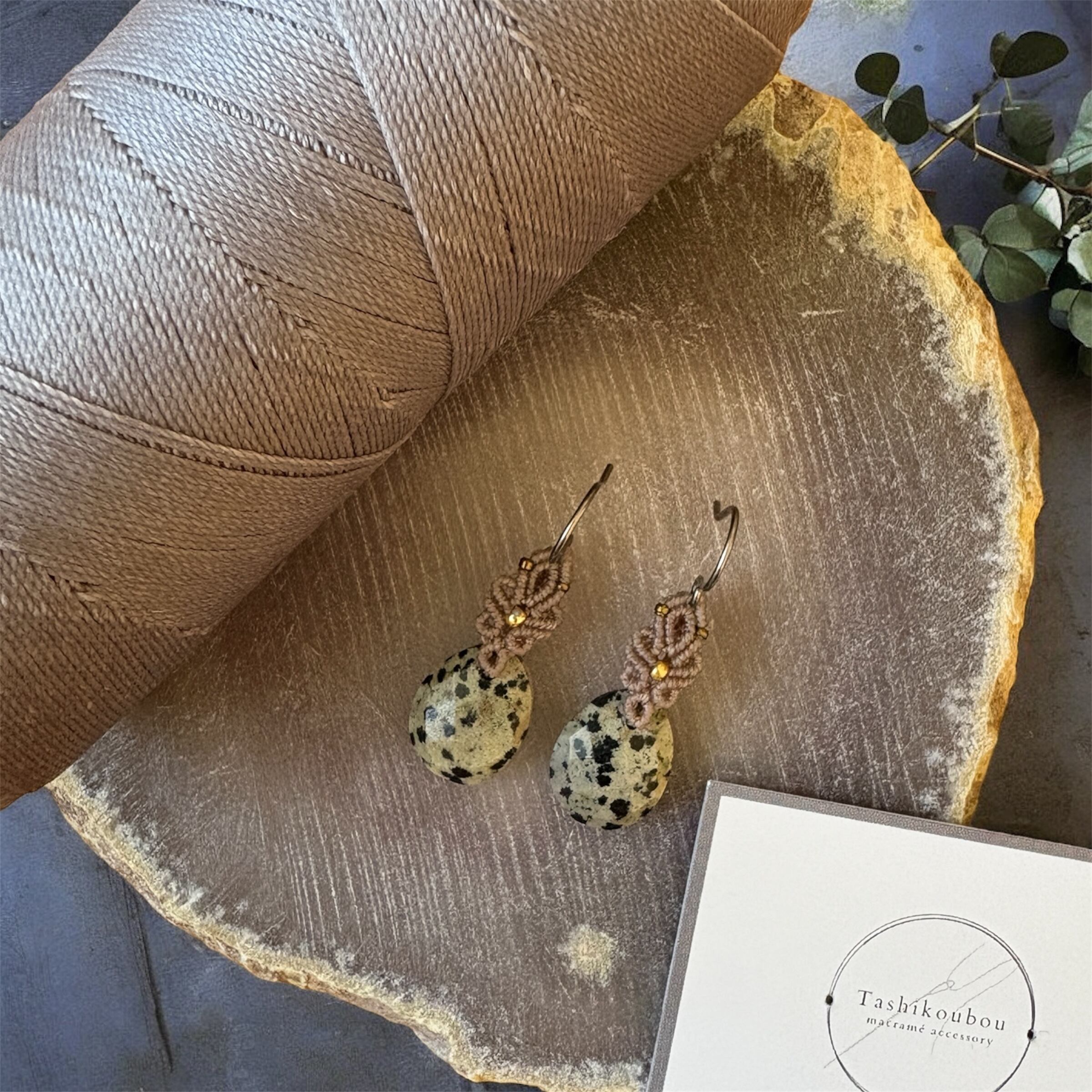 マクラメピアス|ダルメシアンジャスパー (P-DJP-02)