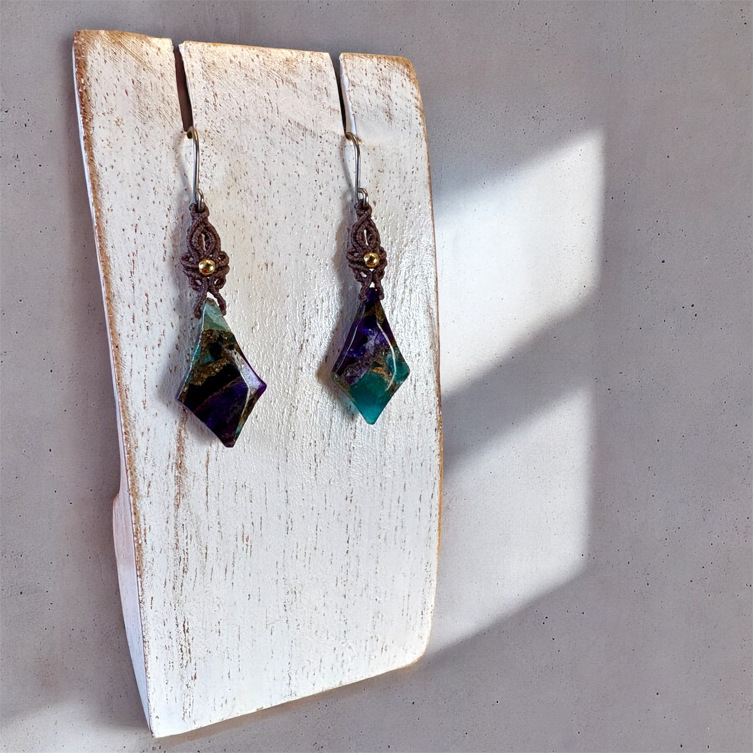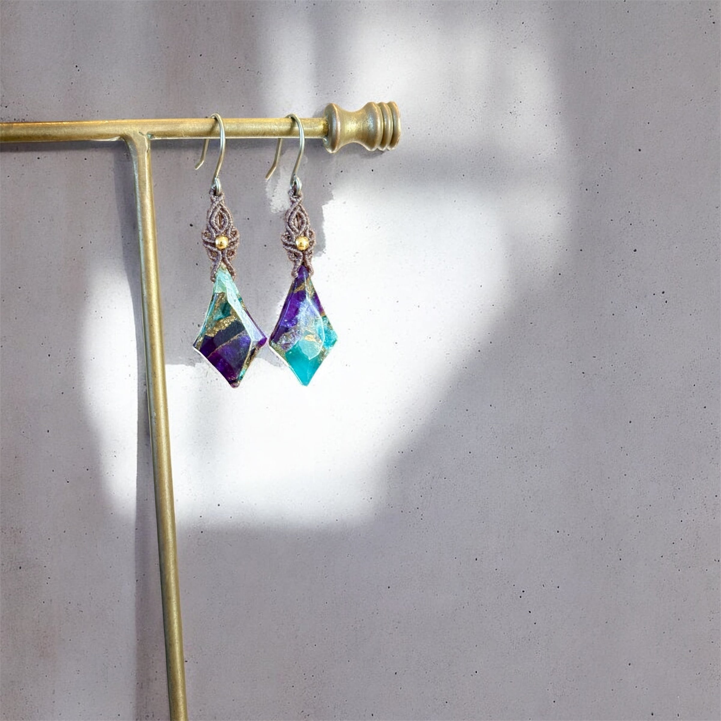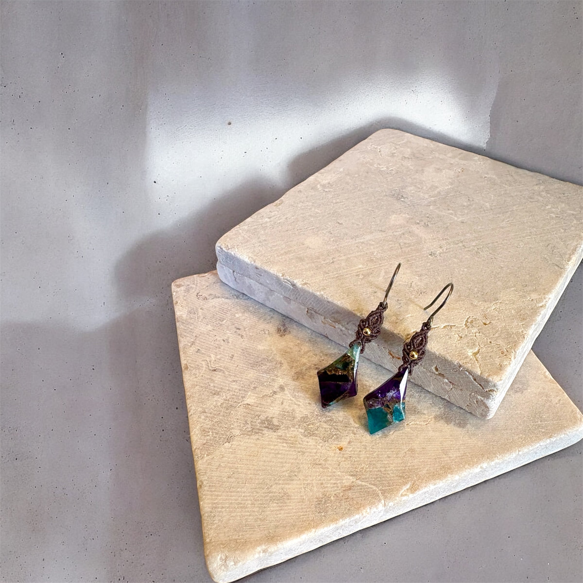 マクラメピアス|ブルーパープルコッパー