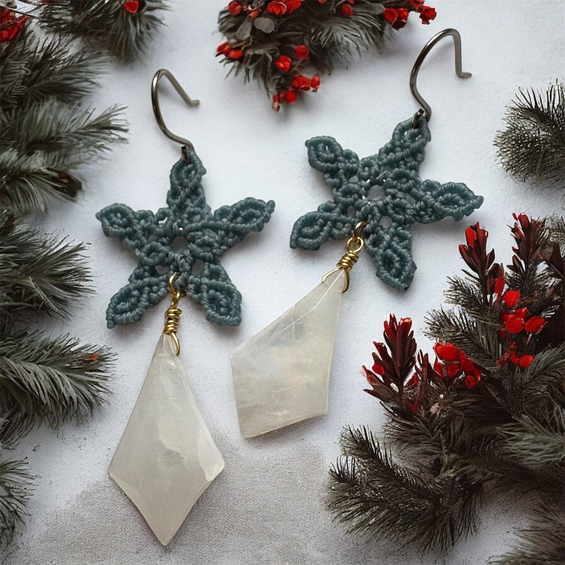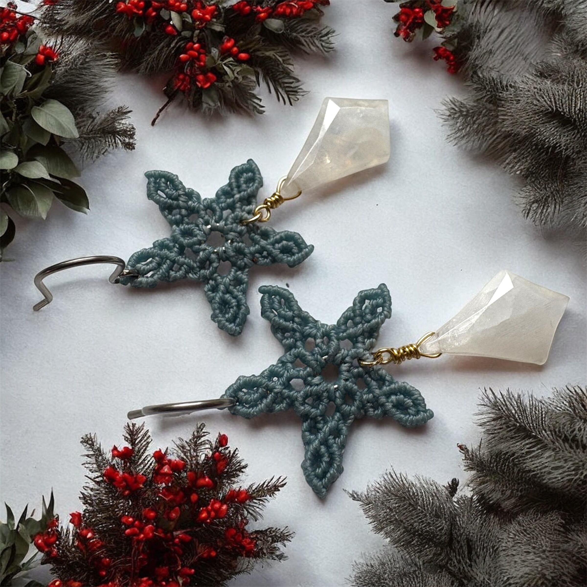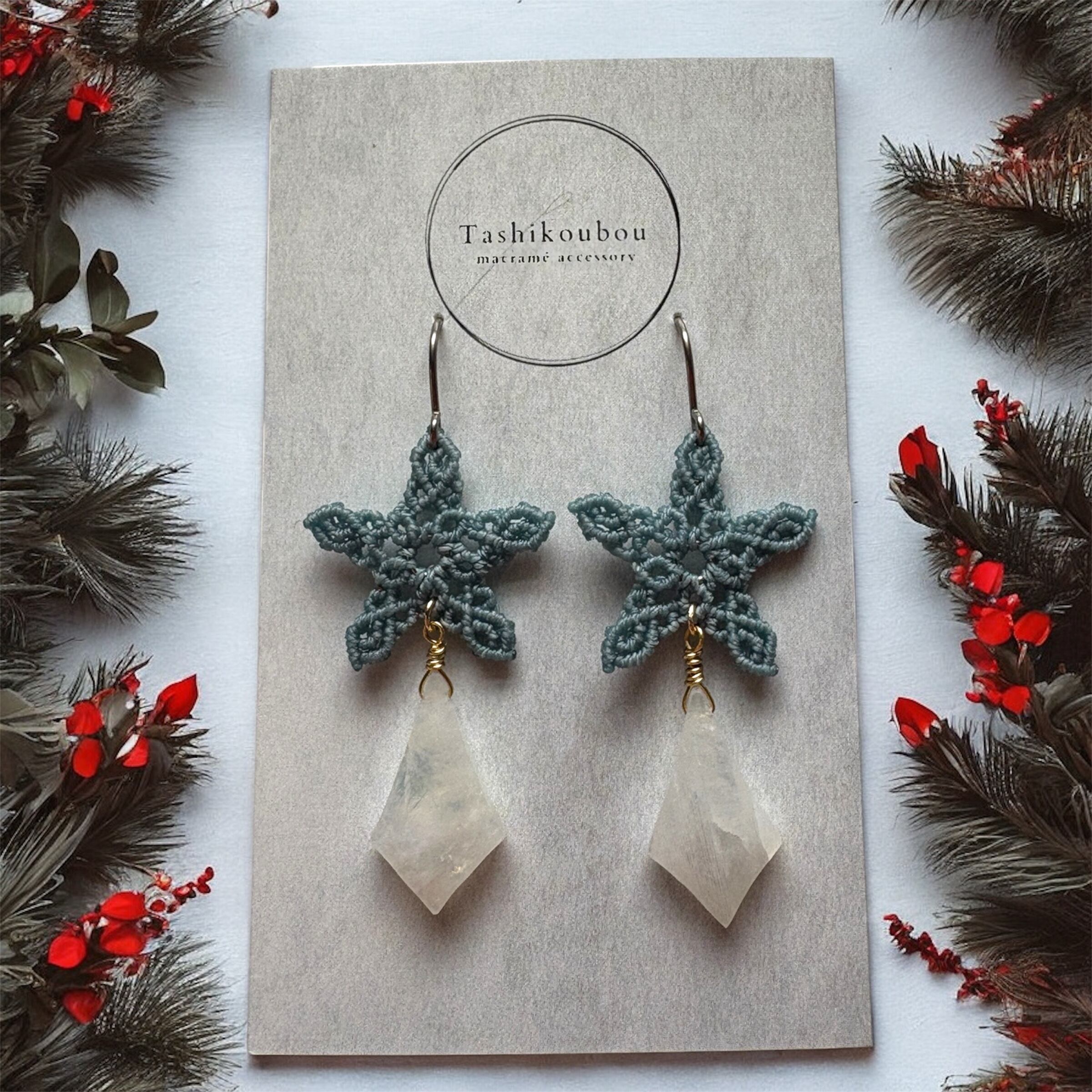 星のマクラメピアス|レインボームーンストーン|Noël collection