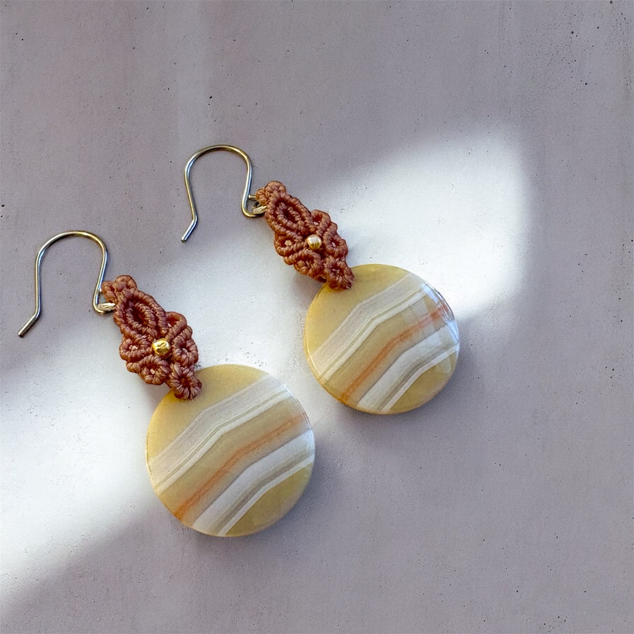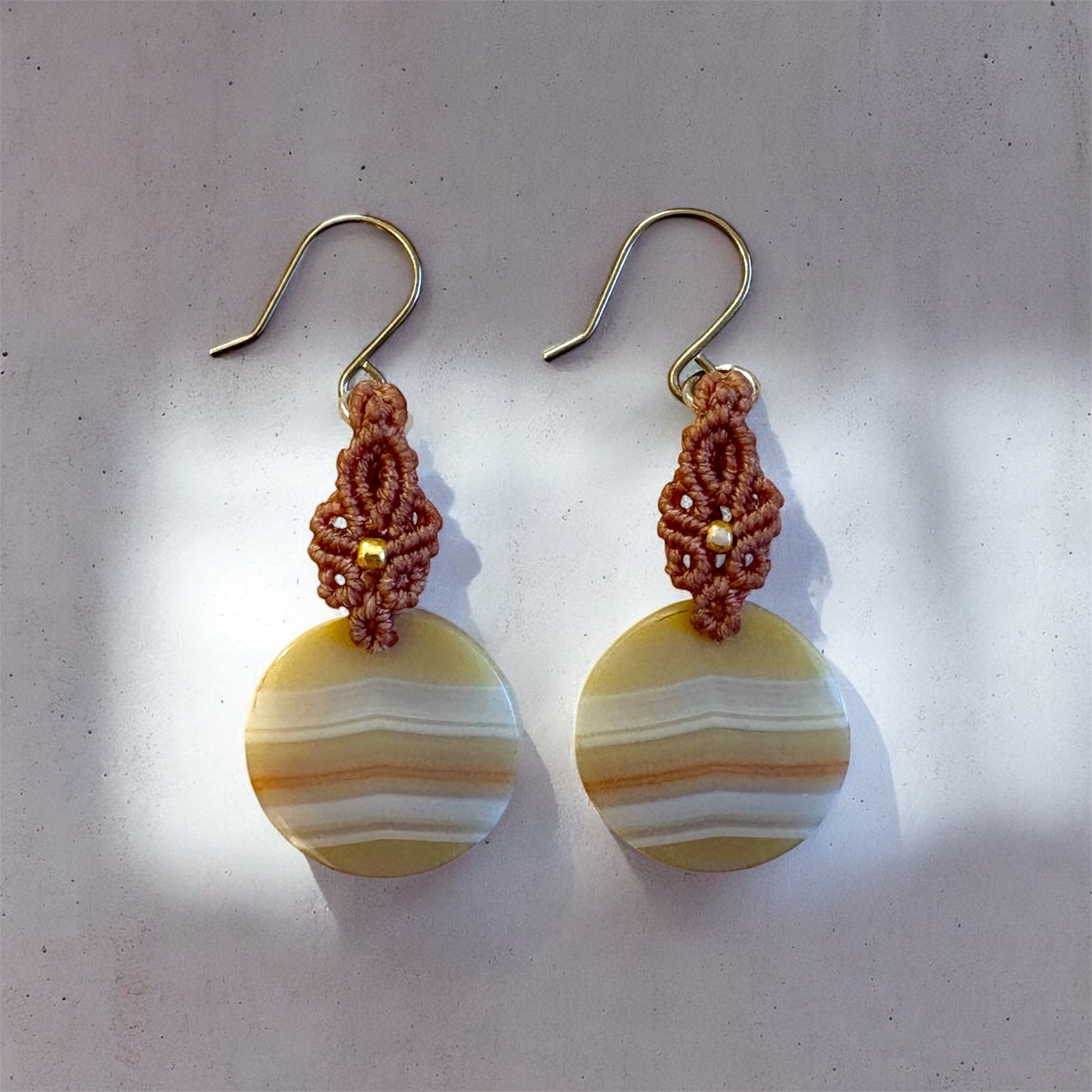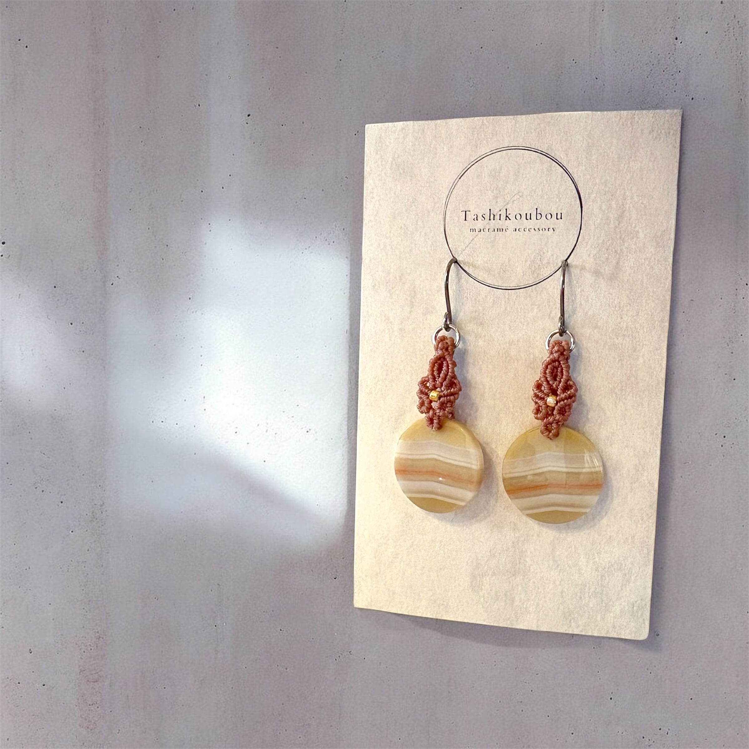 マクラメ編みのピアスです。