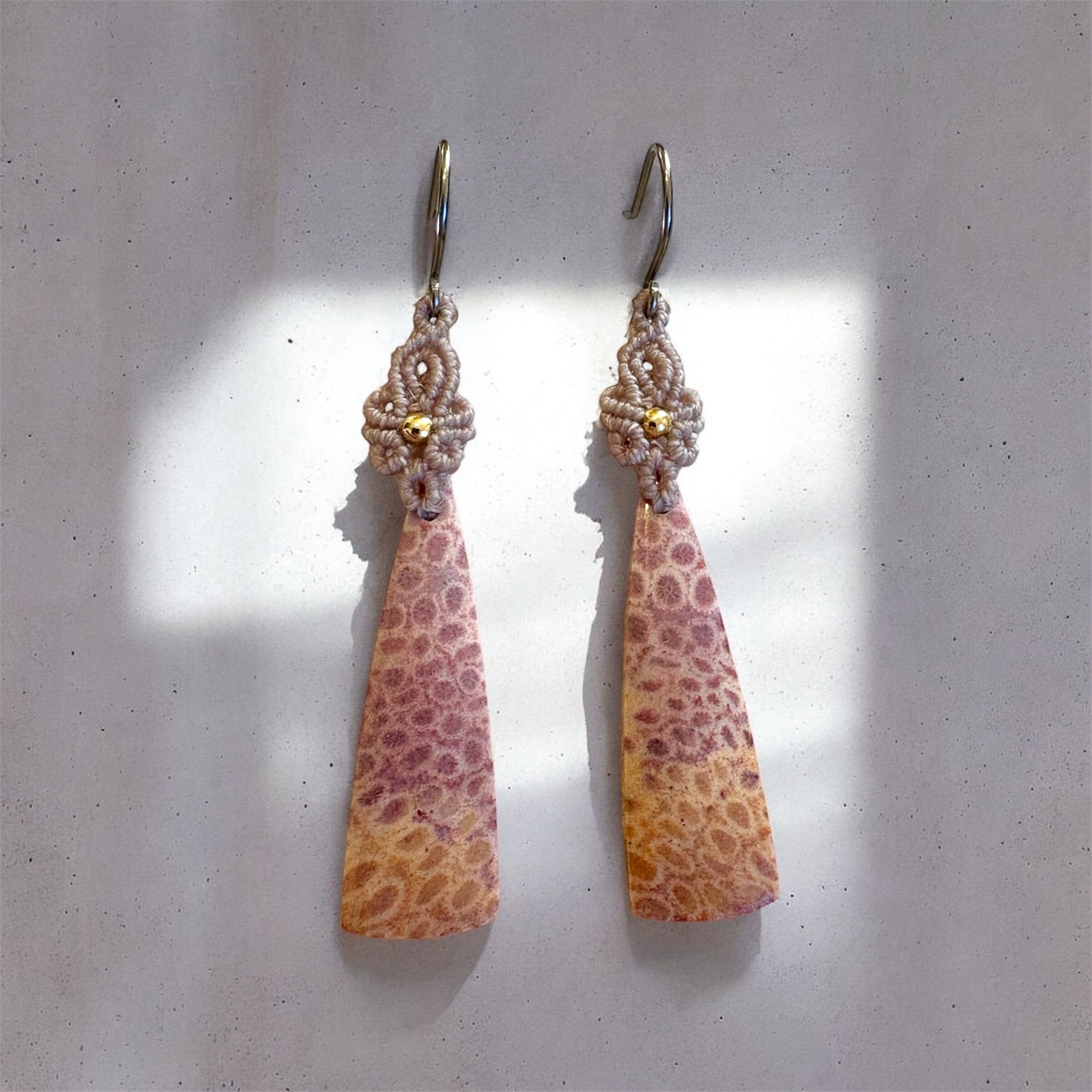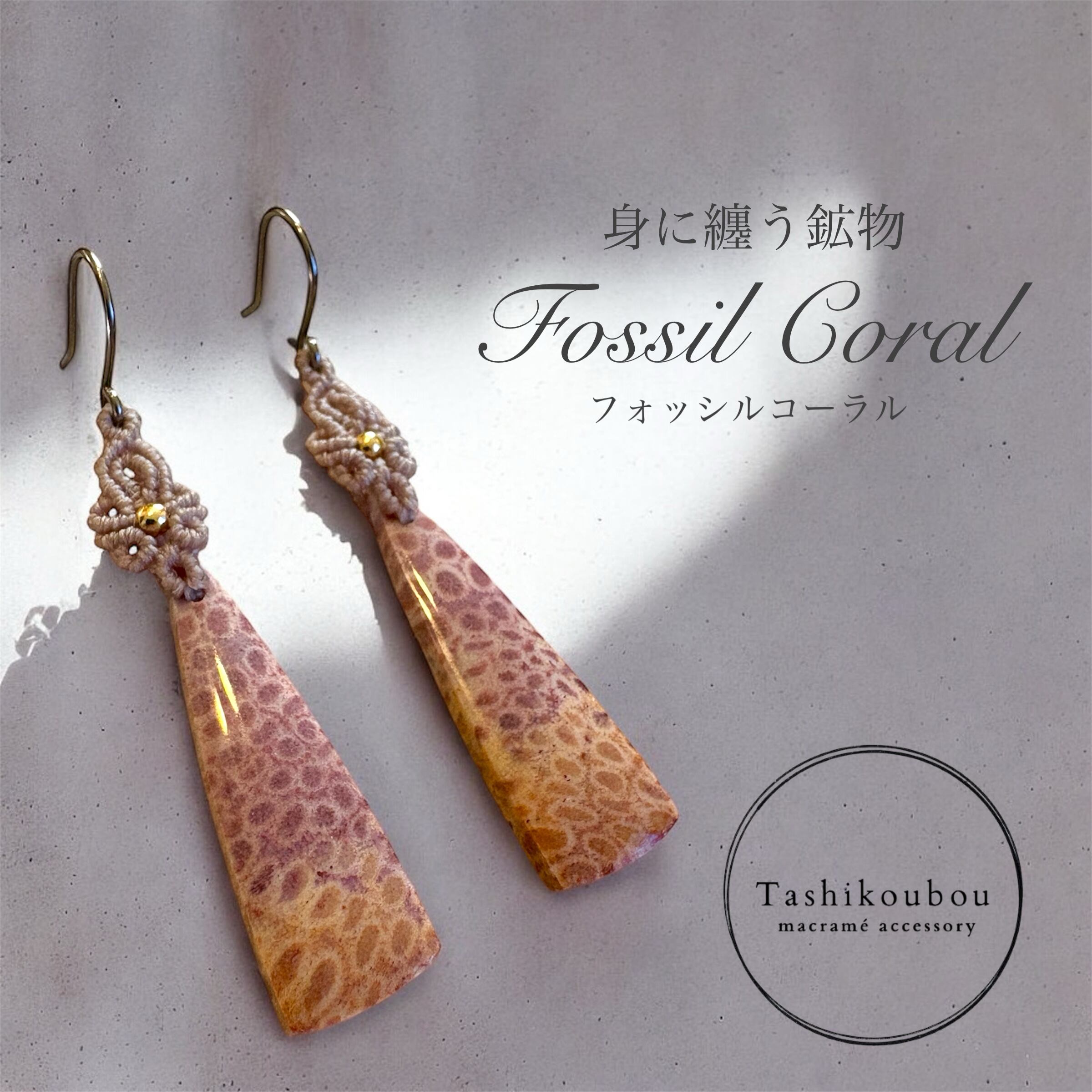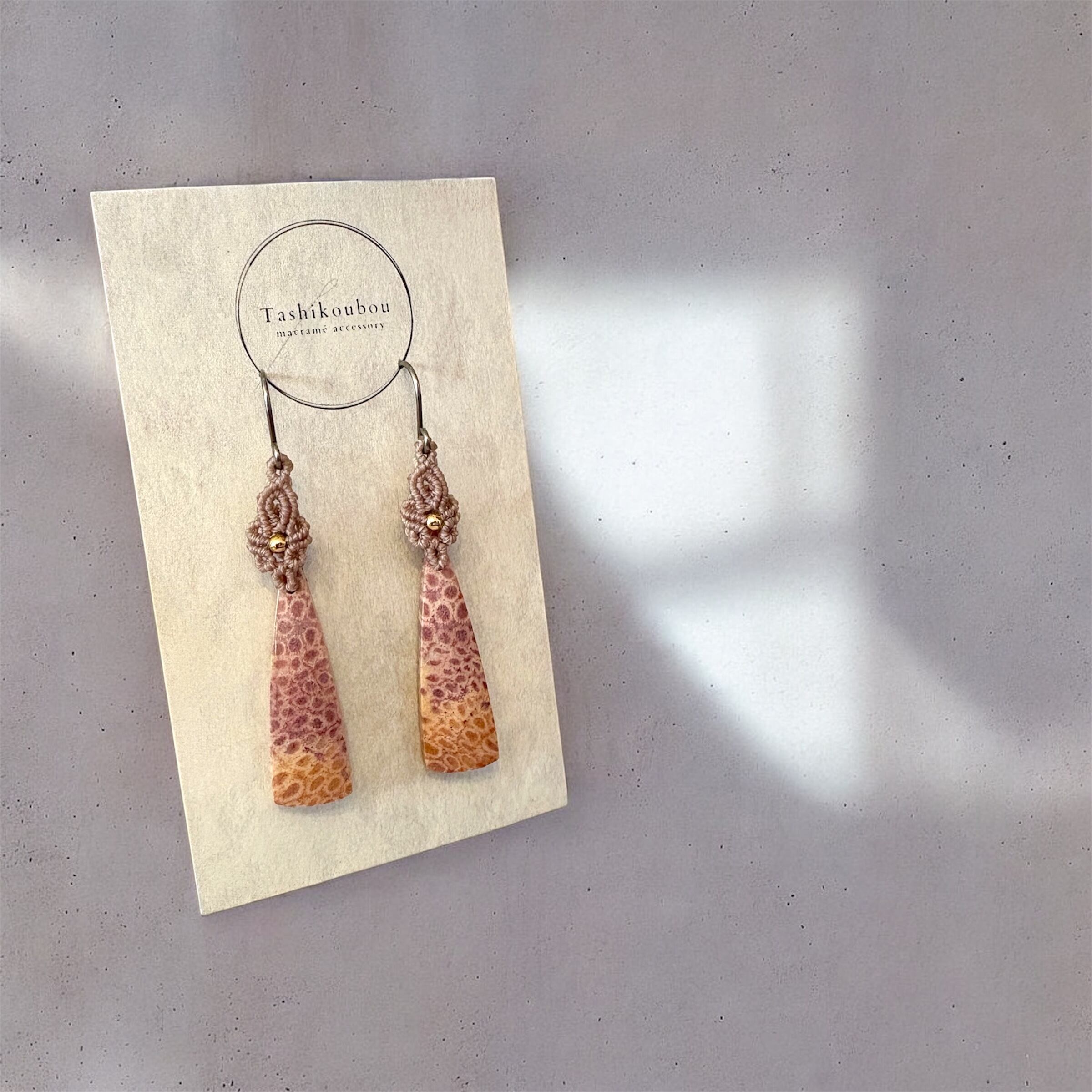 マクラメピアス|フォッシルコーラル (P-FCO-04)