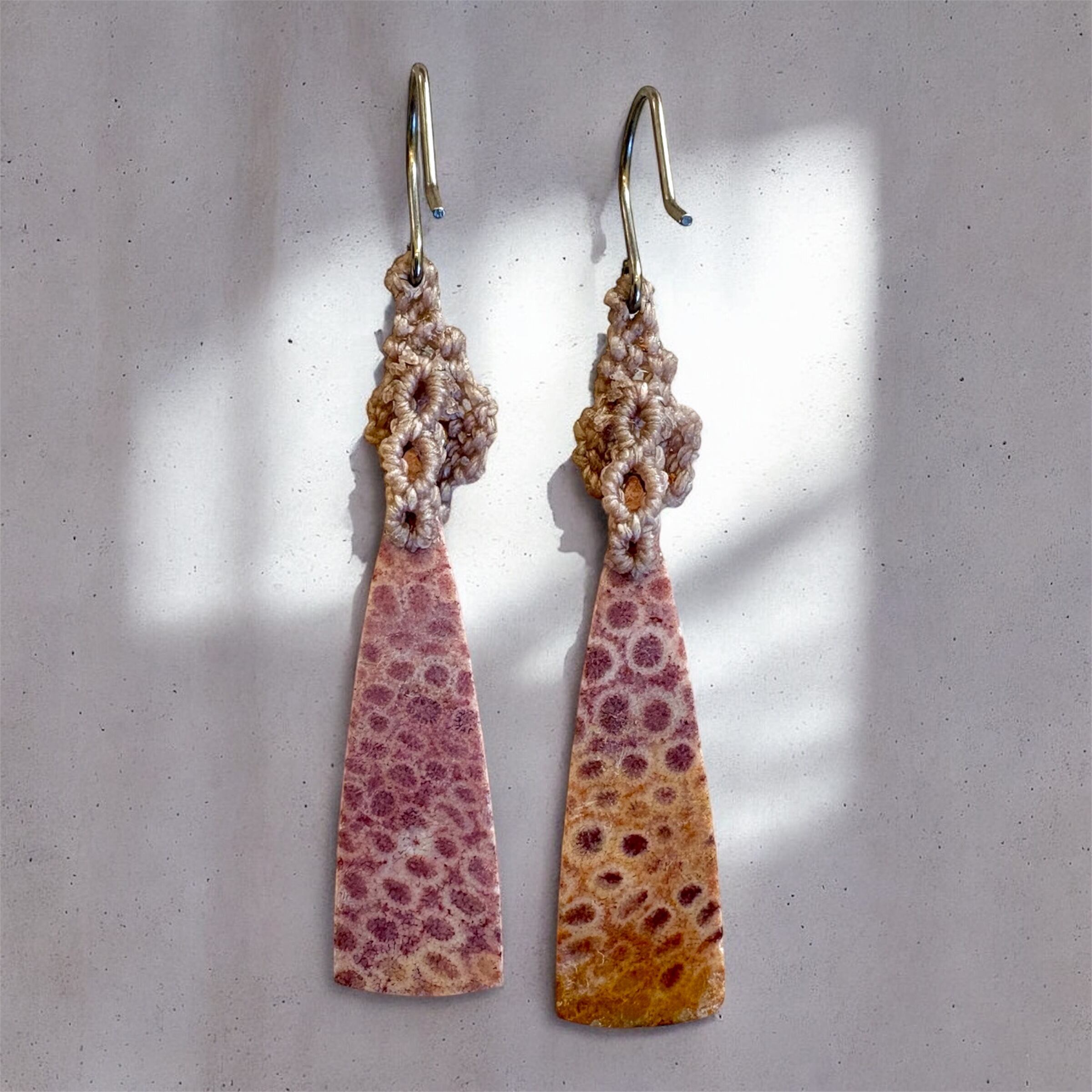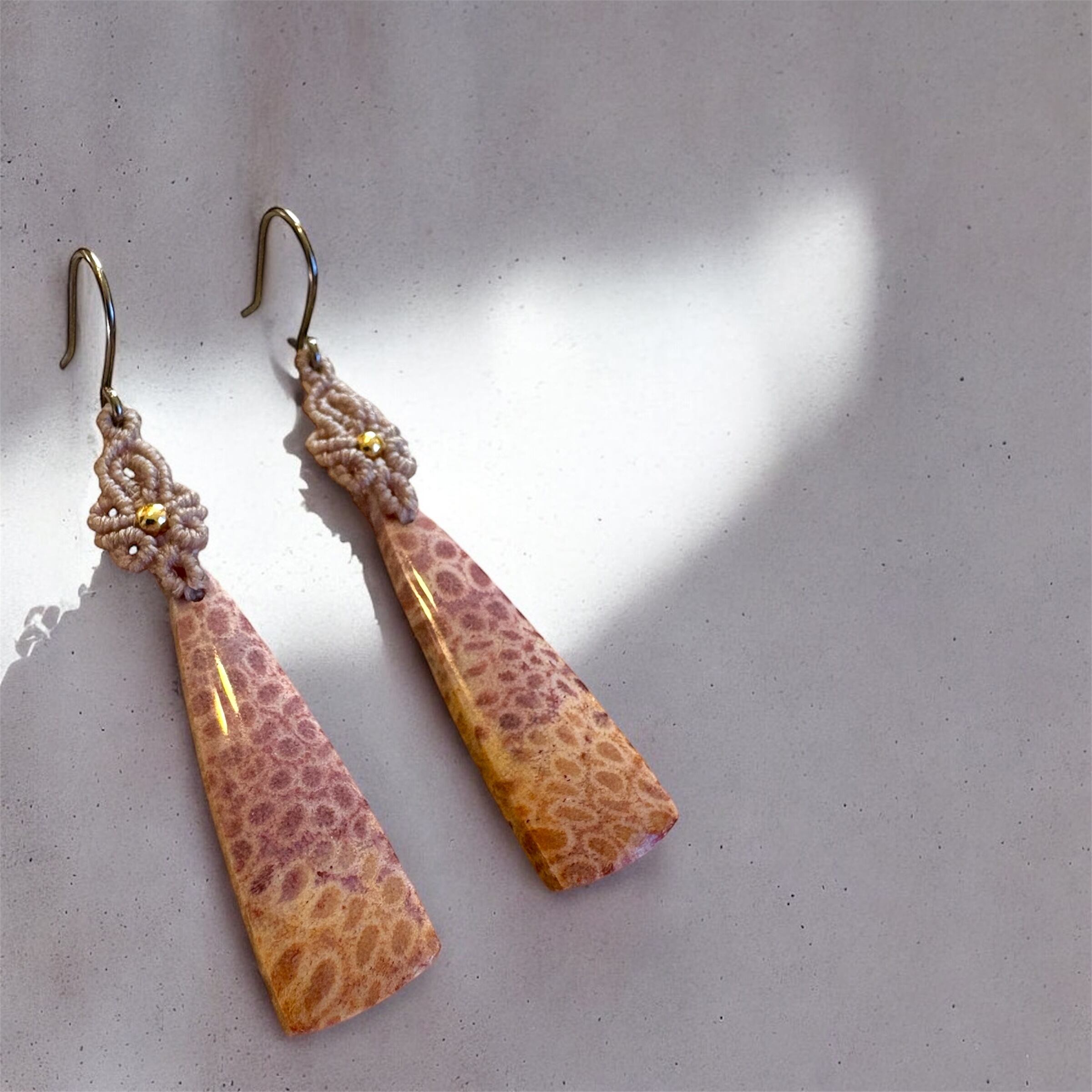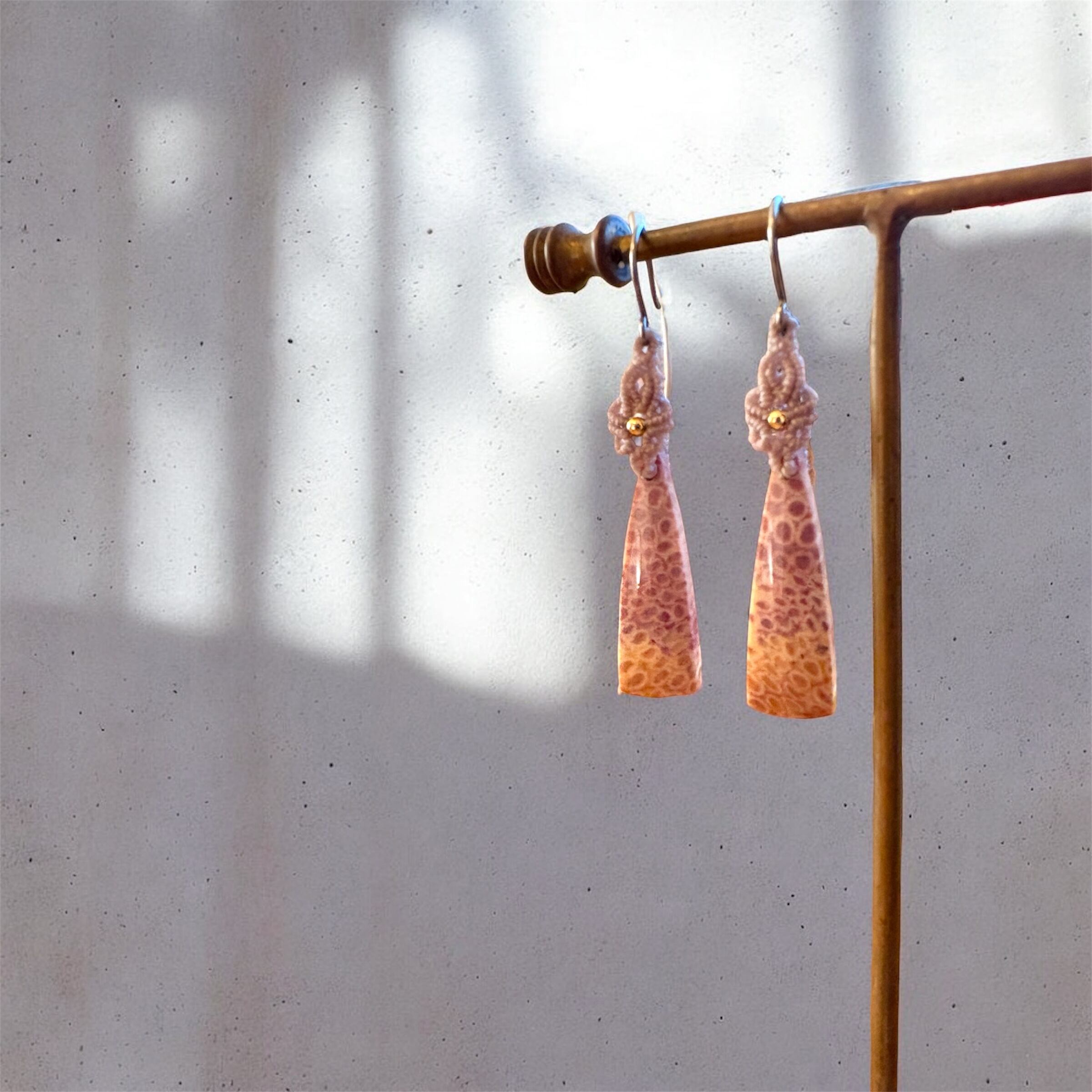 マクラメピアス|フォッシルコーラル (P-FCO-04)