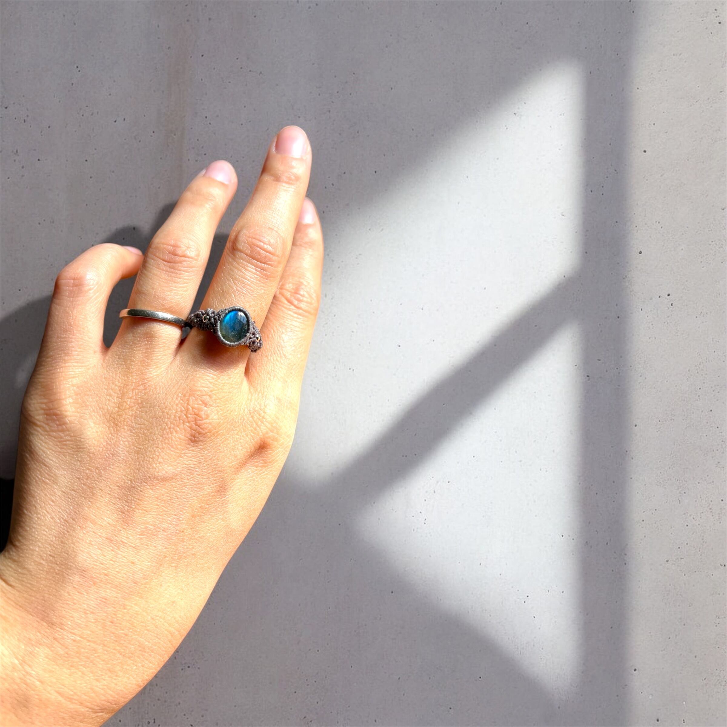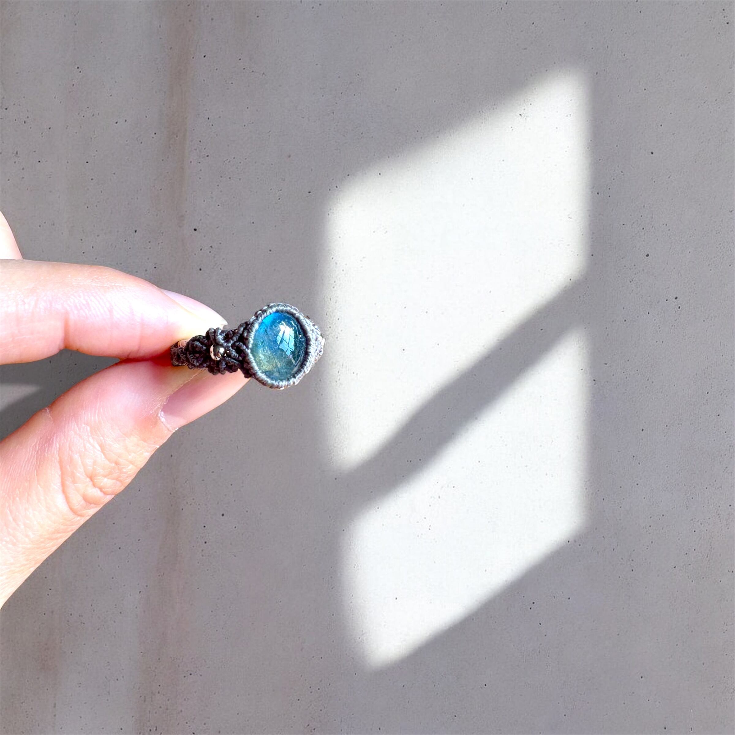 マクラメリング|ラブラドライト シルバー (R-LAB-02)