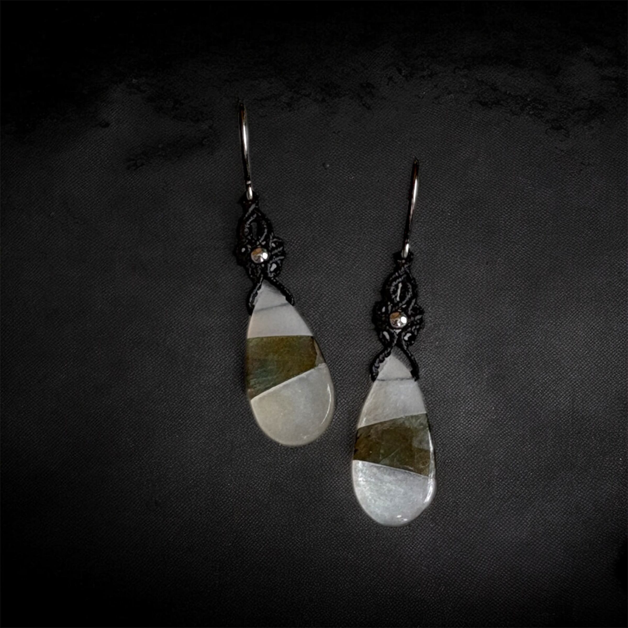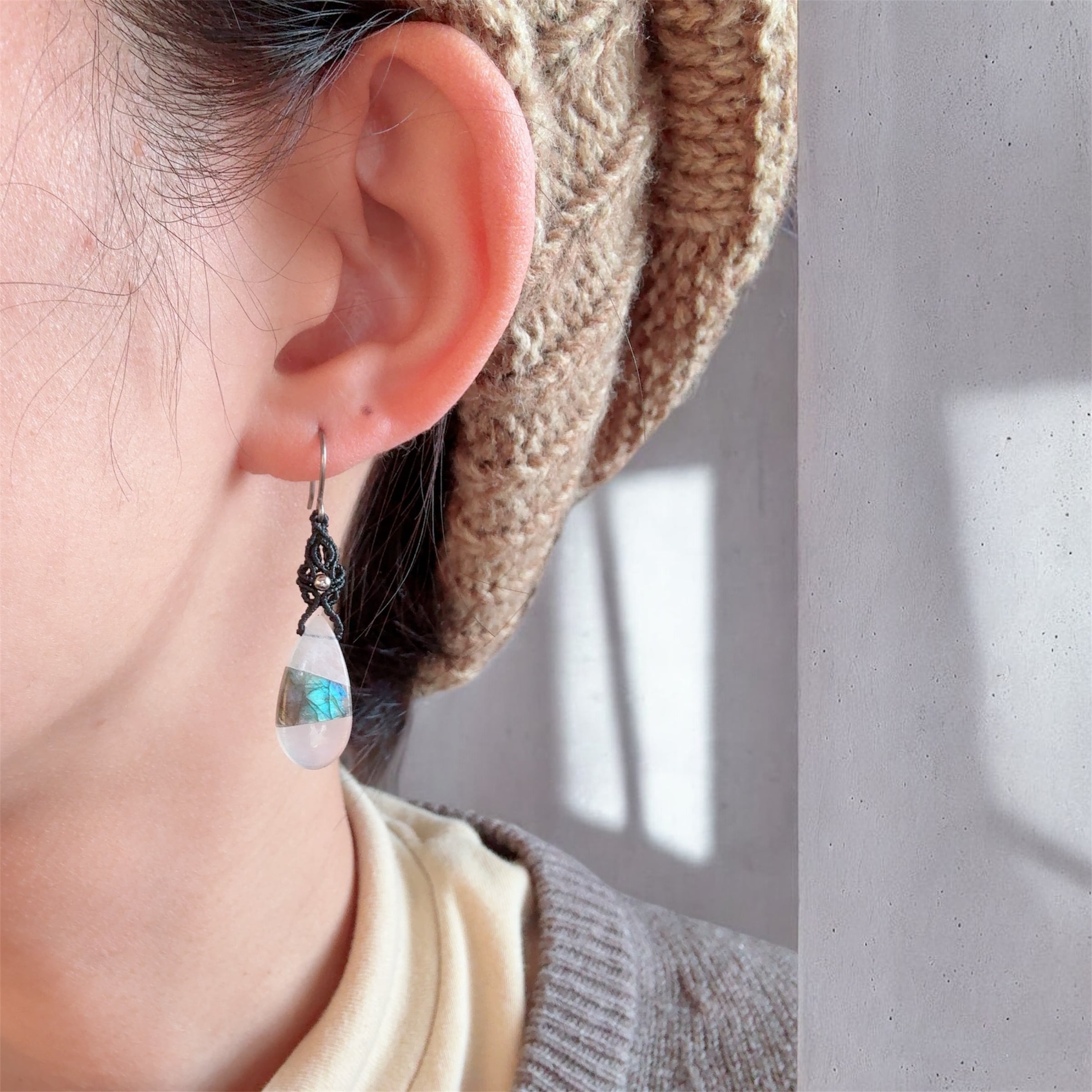 マクラメピアス|ツートンモザイクストーン (P-WML-02)