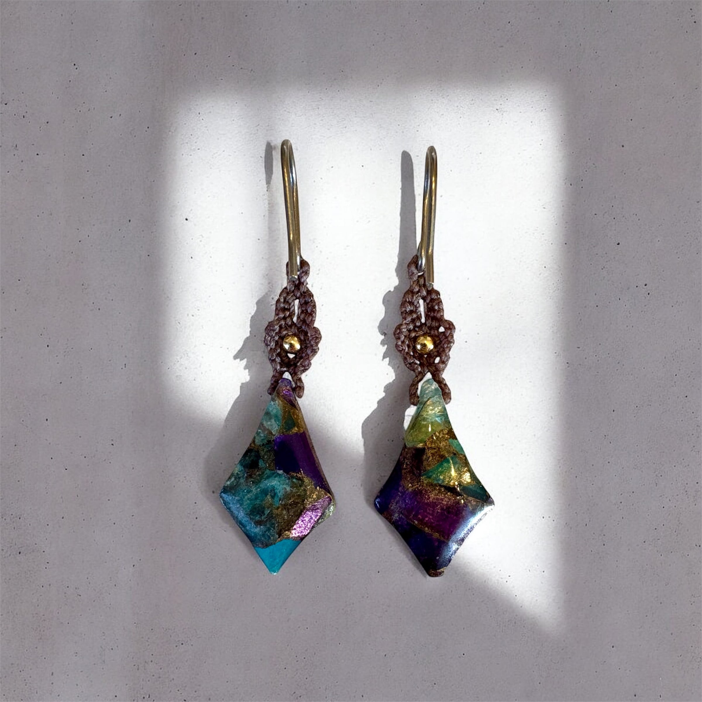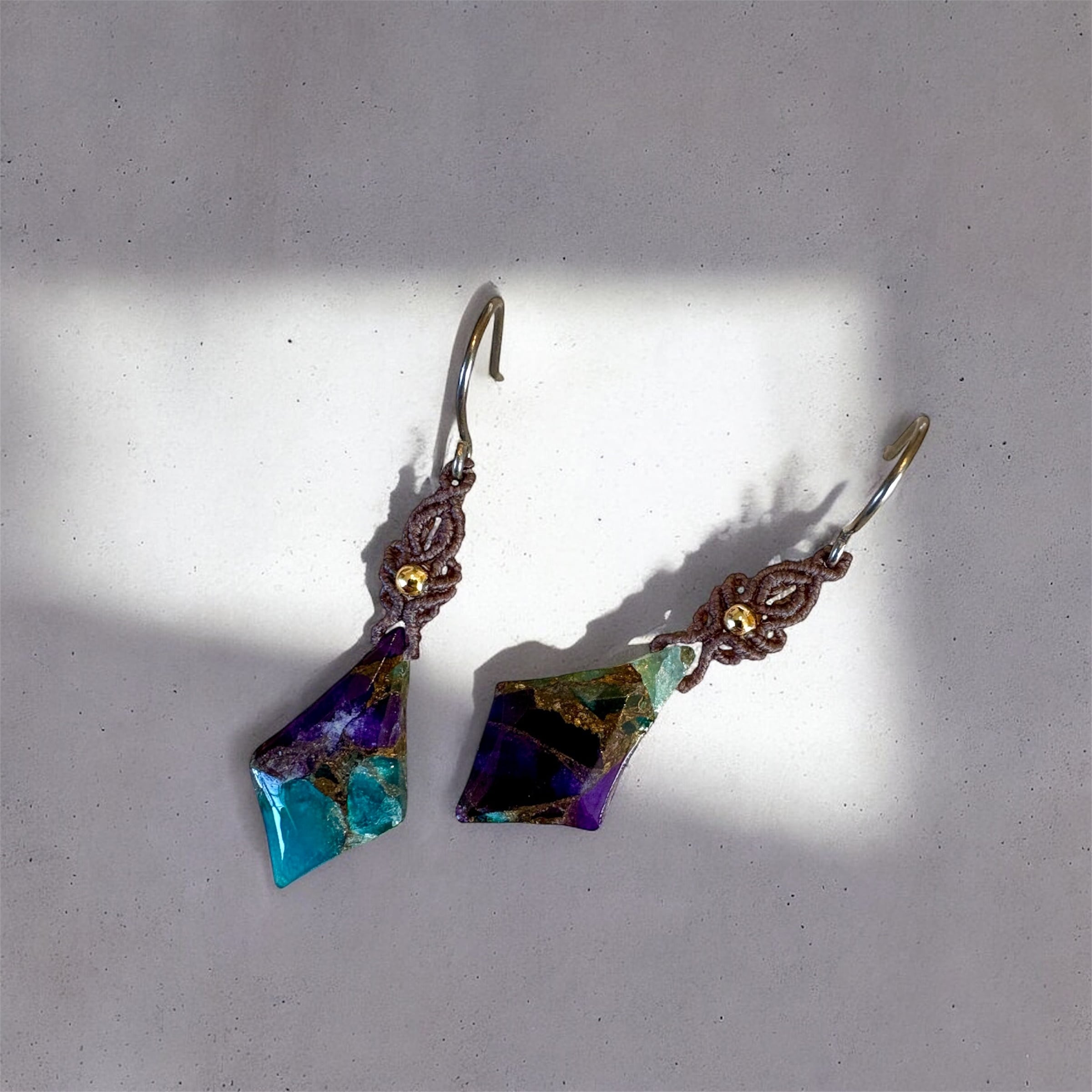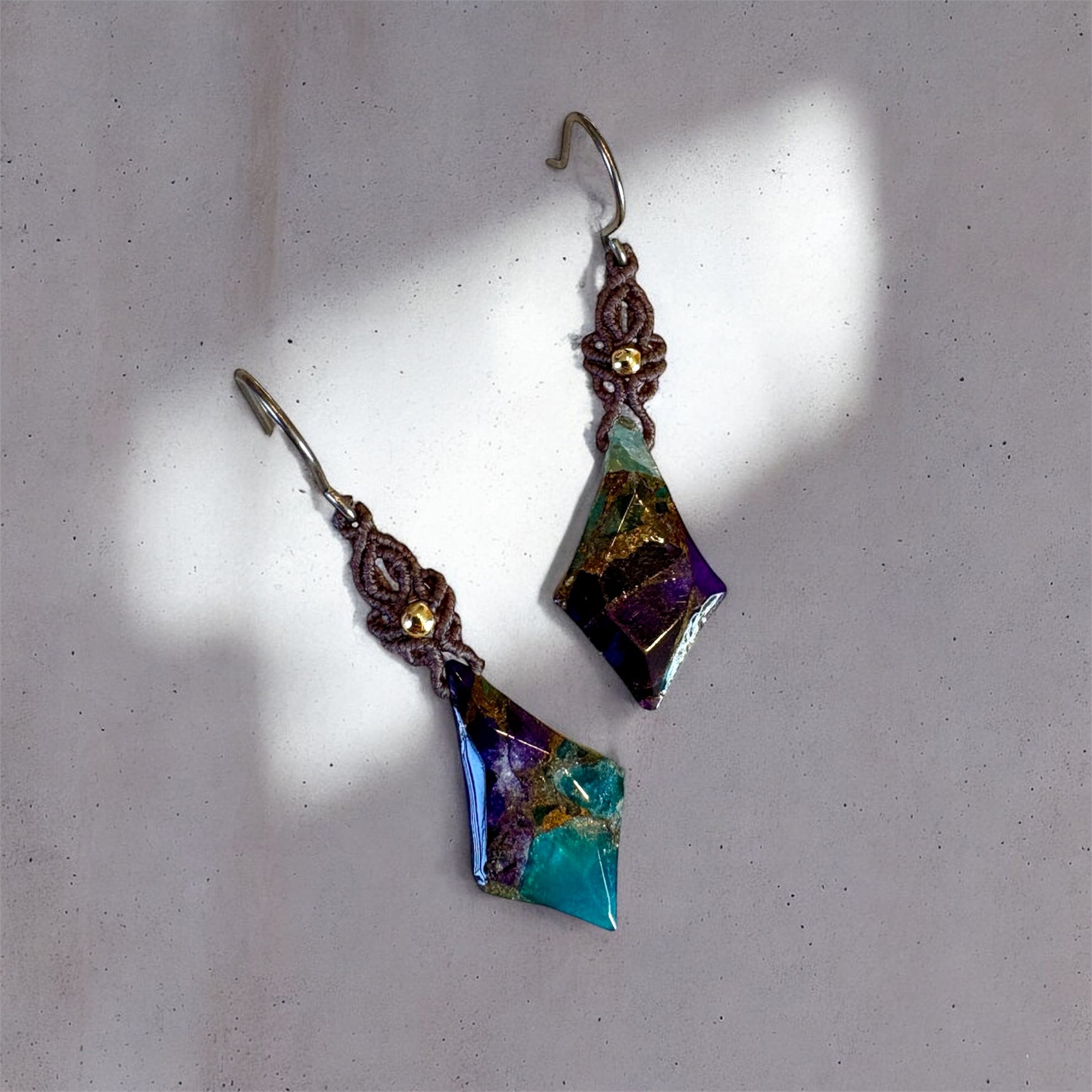 マクラメピアス|ブルーパープルコッパー