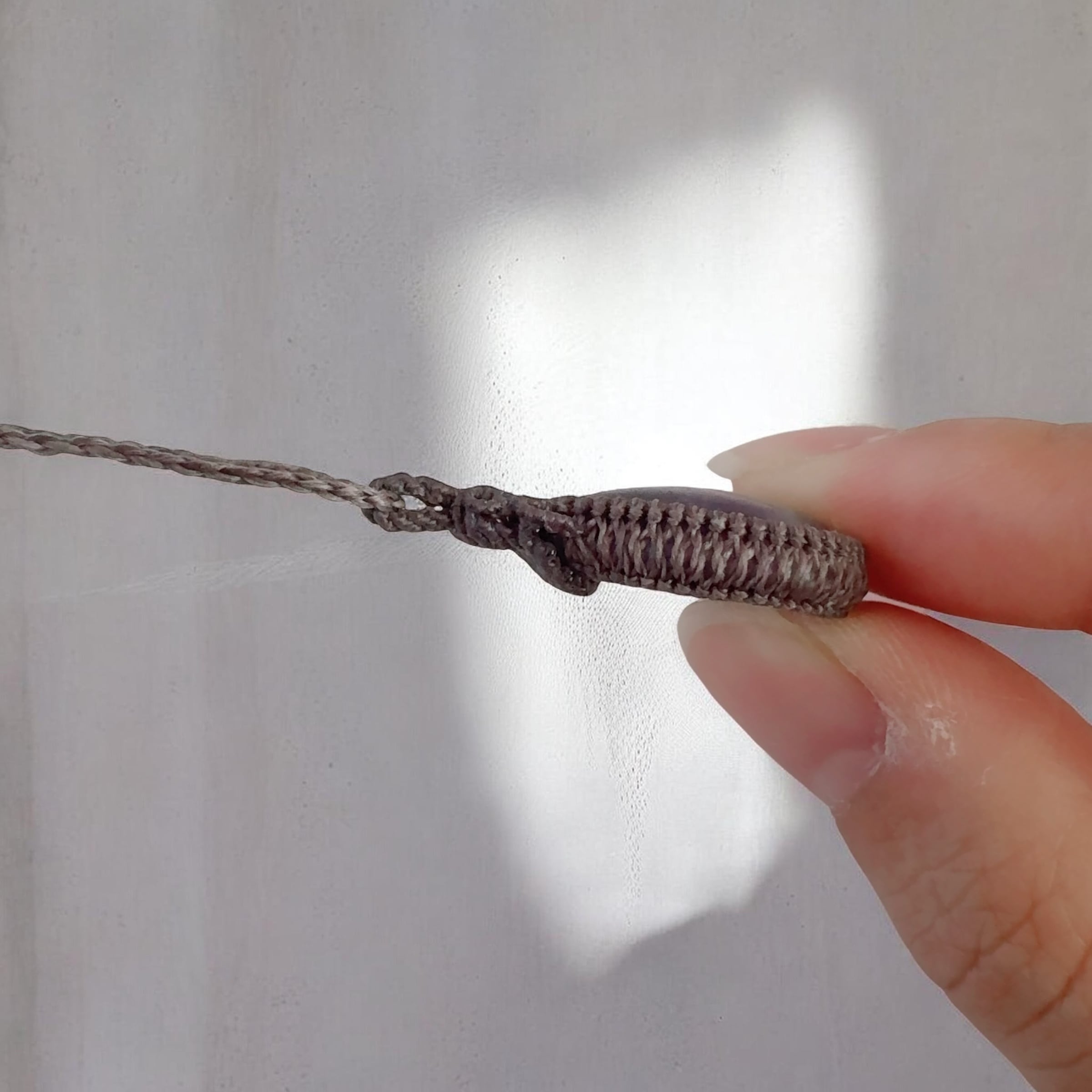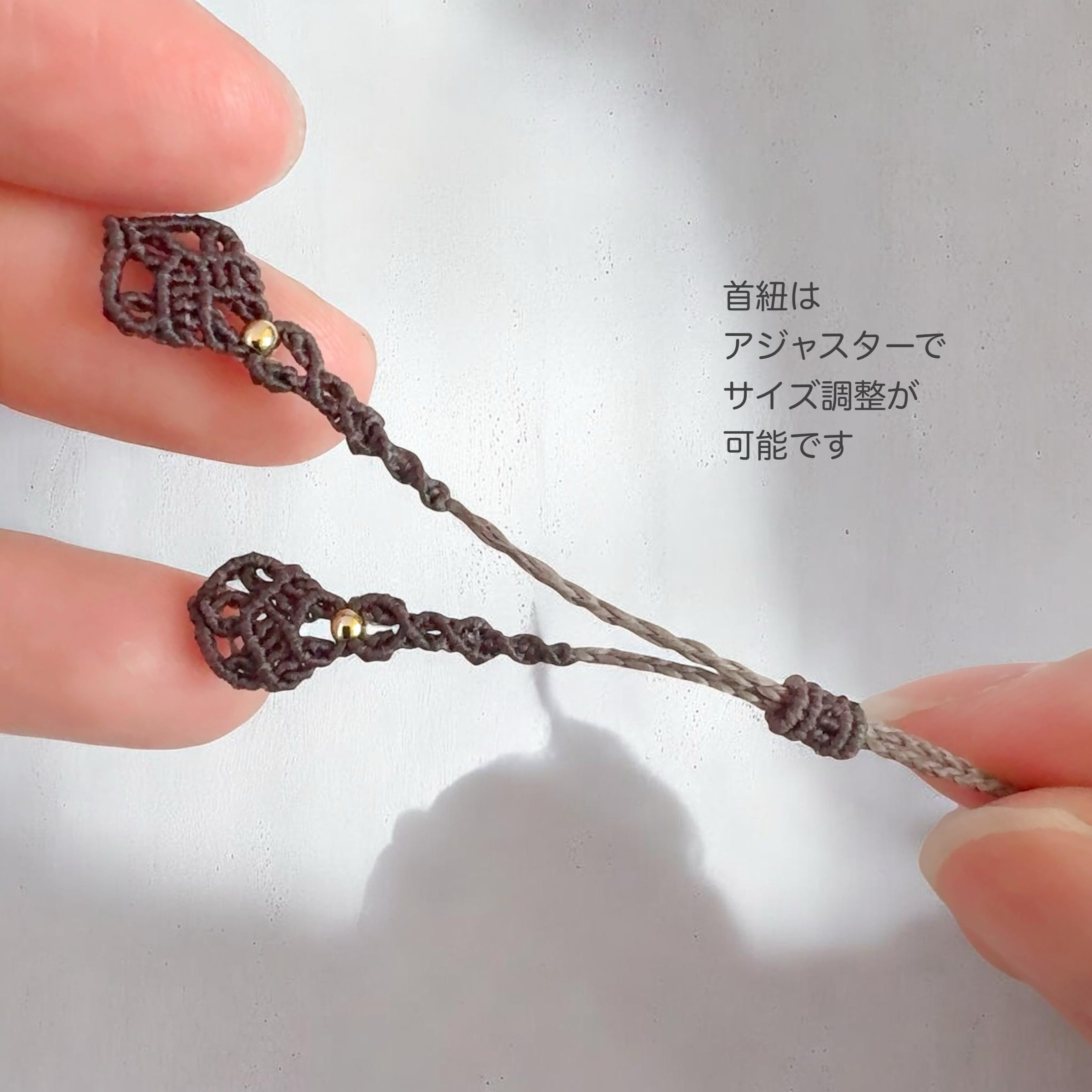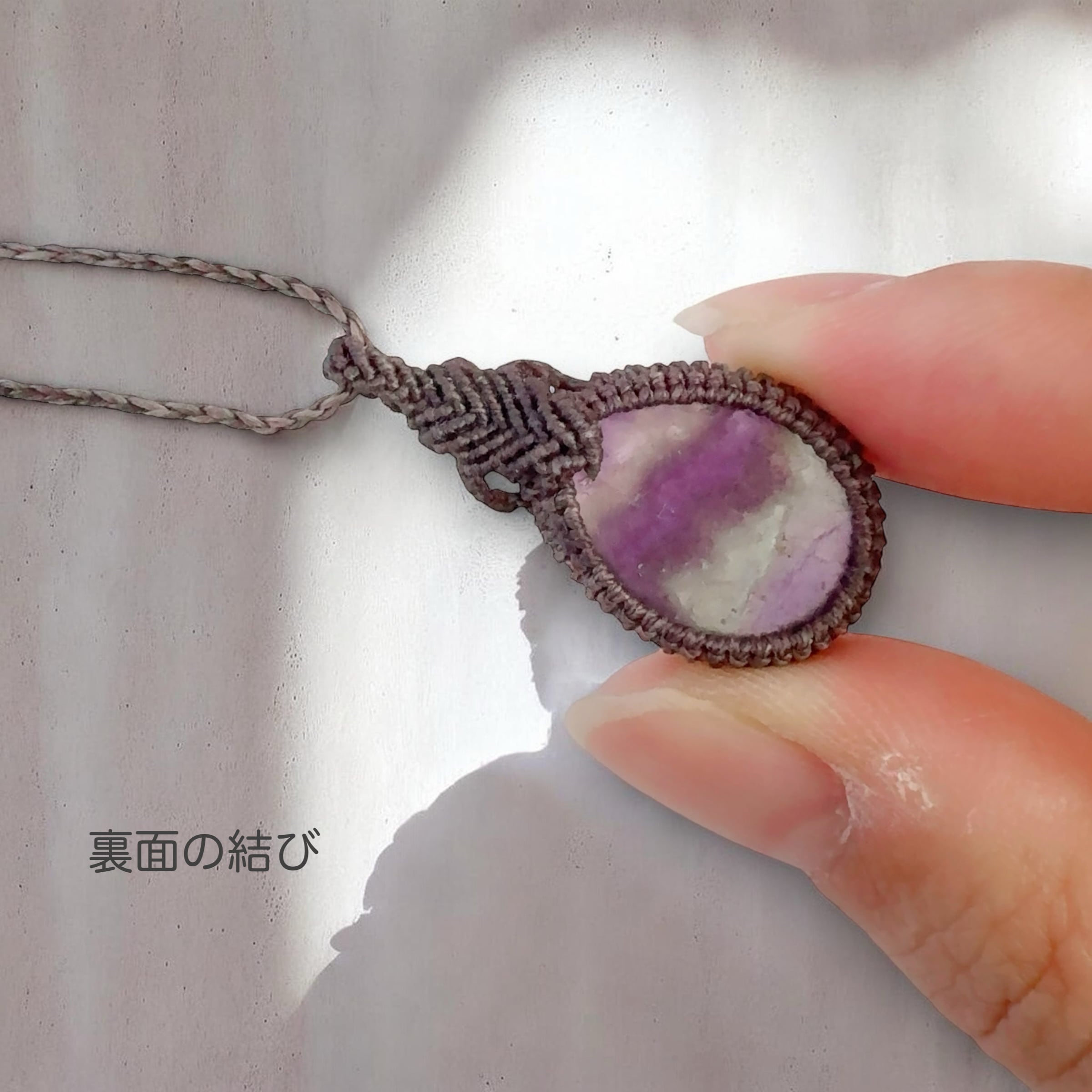 極細の0.24mmマクラメコードで丁寧に結び上げた