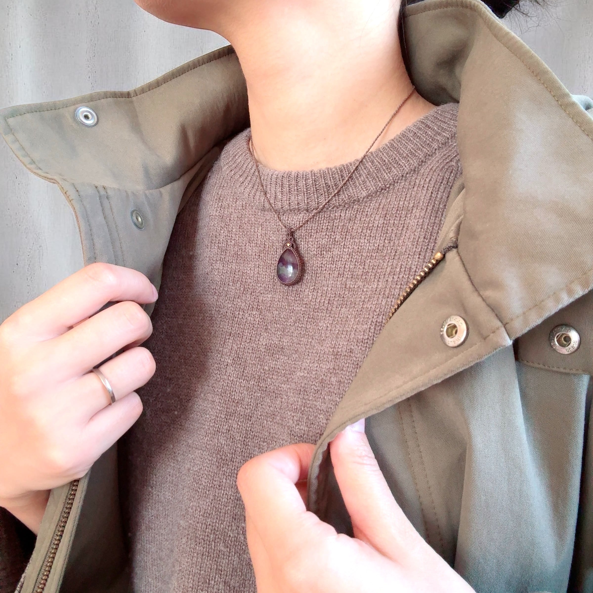 大人の天然石マクラメネックレスを