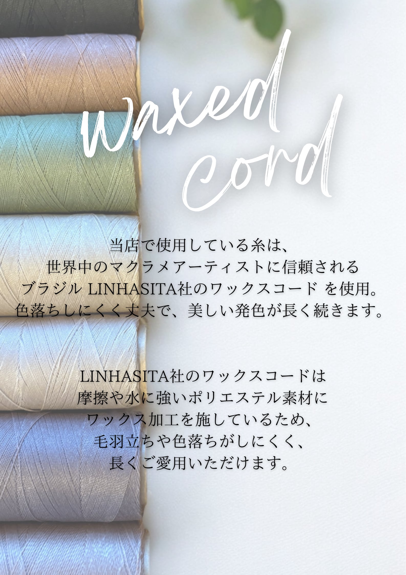 使用コード:ブラジル製「LINHASITA」の極細マクラメコード