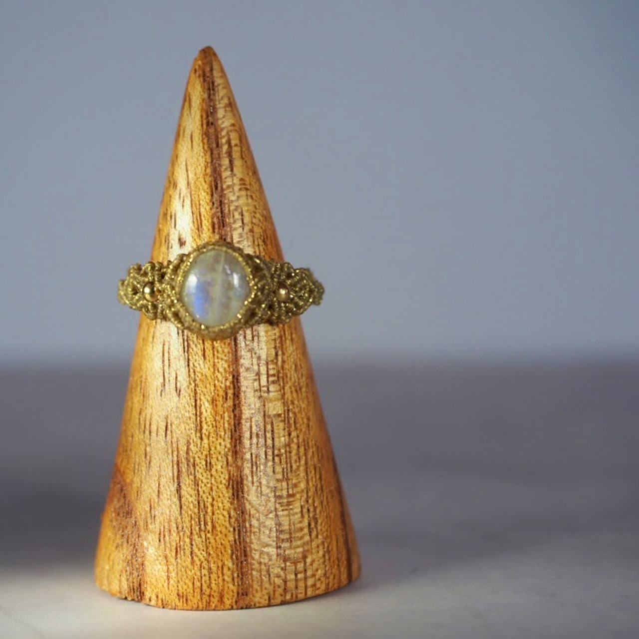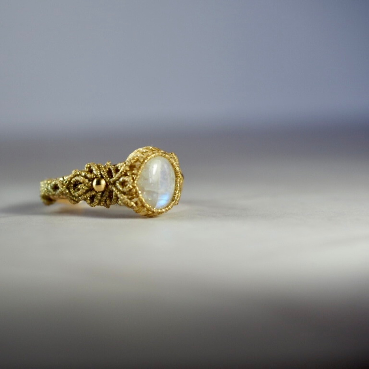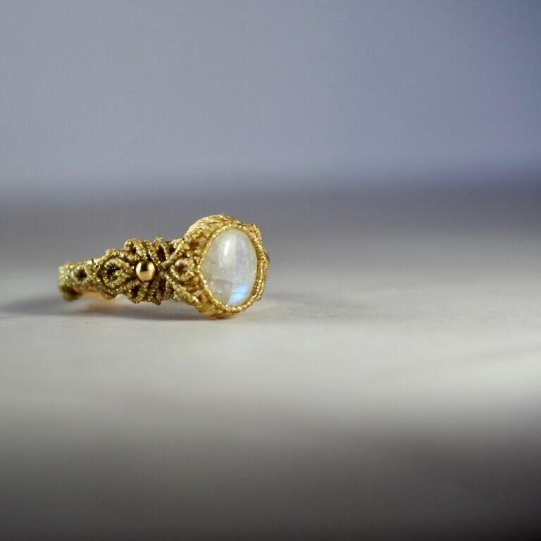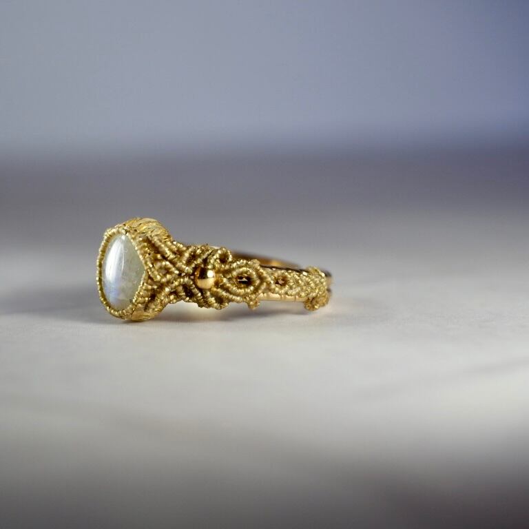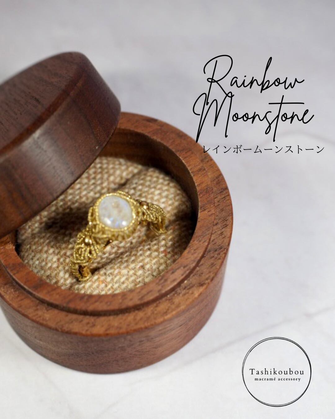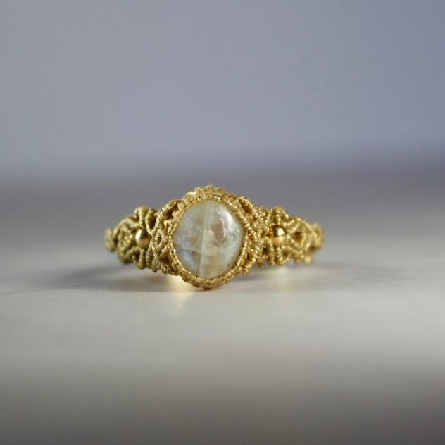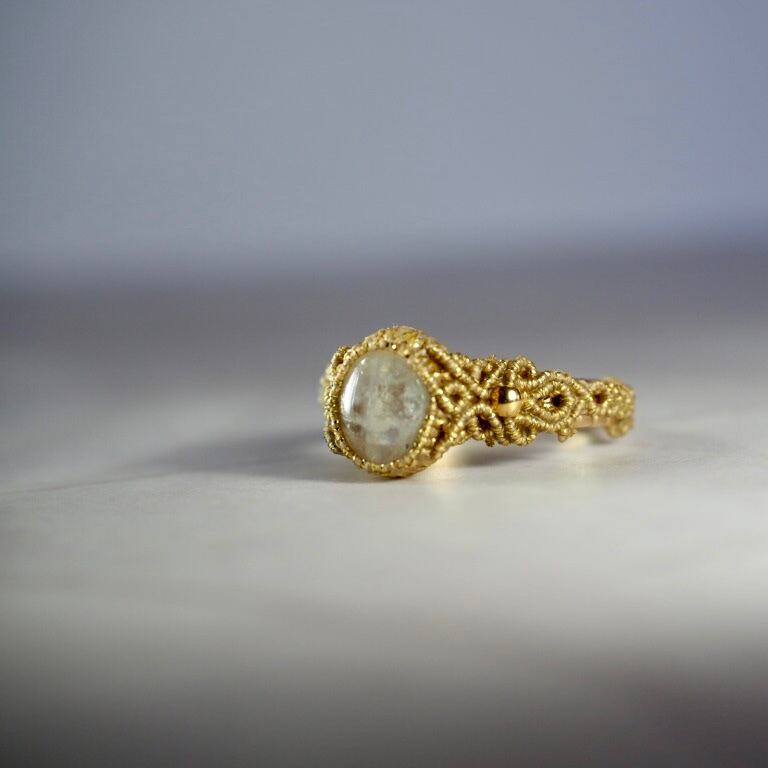 マクラメリング|レインボームーンストーン ゴールド (R-RMS-01)